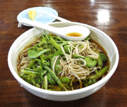 「戸隠山菜蕎麦」(=左の写真)、ドヒャー、ウマーい!こんなにウマイ蕎麦が日本にあったのか?