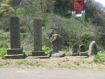 最初にカラフトの所在を確認した鉢崎宿出身の松田伝十郎を記念する石碑 |