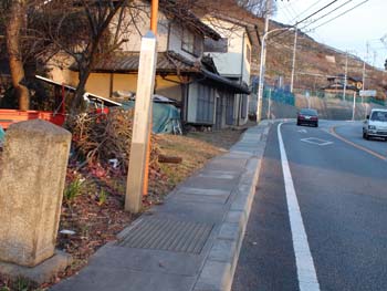 採石現場の中に一里塚が辛うじて残っている。(上の写真・左)