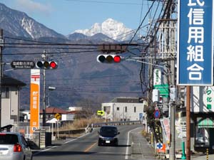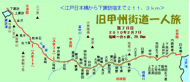 | <後方は富士山。塩崎駅近くの甲州街道> |