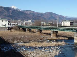 その堤防の根固めに並べ据えた巨大な石が十六石で、その後徳川時代になって今の上宿から下宿まで人家が次第に集まり韮崎は宿場町として栄えるようになったと言われている。 |
