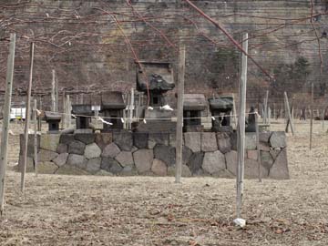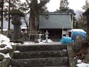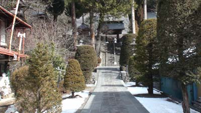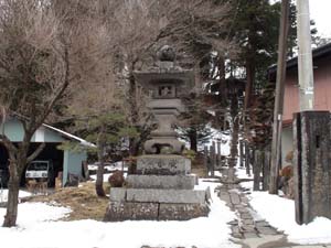 | 右の常夜燈の脇に明治天皇御膳水跡があったが、その日、寒くてちょっと飲む気にはなれない。 |