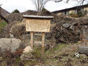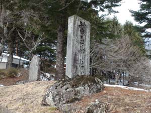 南朝方の征東将軍宗良(むねなが)親王は、甲斐の国(山梨県)の武将たちを味方につけようと、駿河の国(静岡県)から入ってこの地まで来たが、味方につく者はなく,松のかげで野宿し寂しく信濃の国(長野県)佐久地方へ向かわれた。その時詠まれた歌を歌碑として大正11年菅原村が建立したものである。