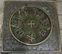 | <日本橋のド真ん中に埋め込まれた「日本国道路元標」> |