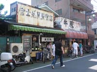 肉屋の表で美味そうな焼き鳥を売っている。もつ焼きを1本だけ購入。客の40歳代の男性から「どちらから?」と聞かれたので「日本橋から」と答えると「ホーッ」と感心してくれる。