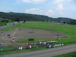 <河川敷には野球場が広がっている> |