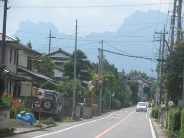 <前方にゴツゴツした妙義山、