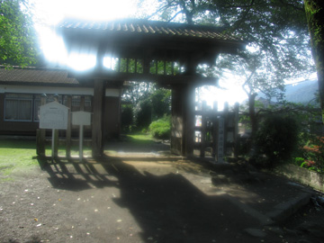 門柱および門扉は当時使用されていたもので、総ケヤキ材の要所に金具を用いた堅固なものである。ほかに屋根材6点と台石も当時のもので、昭和34年1月、東京大学教授工学博士・藤島亥治郎氏の設計により復元された。