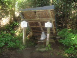 碓氷峠の頂上に位置し、昔は「碓氷権現」または「熊野権現」といわれました。県境に建つこの神社、群馬県民は「熊野神社」と呼び、長野県民は「熊野皇大神社」と呼ぶ。この神社に残る古鐘は、鎌倉時代に松井田一結衆により寄進されたもの。境内には三本社が。中央の本宮は境界上に、右手新宮は群馬側、左手長野側に那智宮がある。「日本書紀」にある、第12代景行天皇の皇子日本武尊(やまとたける)が妃の弟橘姫をしのび、「吾妻はや」と嘆かれたのも、この神社の境内。