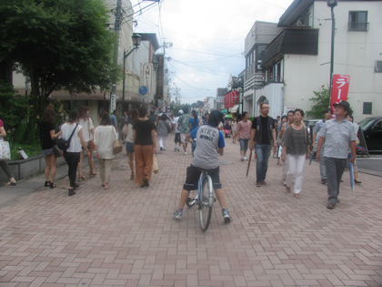 軽井沢銀座の真っ只中、観光客がウジャウジャいる。