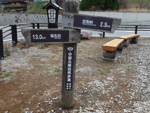 望月宿から芦田宿までは約4・8km。天保14年の人口は326人、総戸数80軒、本陣1軒、脇本陣2軒、旅籠6軒であった。諏訪道、上田に通じる脇街道との分岐点で、中山道の整備が始まる前の慶長4(1597)年に地元の土屋、岩間氏が願い誕生した宿である。西には難所のひとつ「笠取峠」がある。中山道のこのあたりは立科山の尾根裾を行くと起伏に富んだ地形が見られる。 |