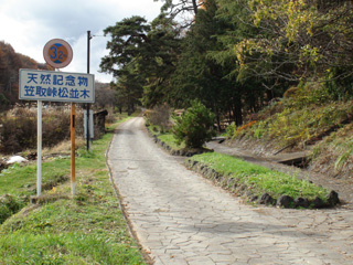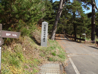 笠取峠は長久保宿に向かって(芦田宿に向かって)急な上り坂を過ぎると、標高887メートルの笠取峠の茶屋跡に今は松林の中に立て札が立っている。峠に吹き荒れる風に笠が吹き飛んだことからついた。