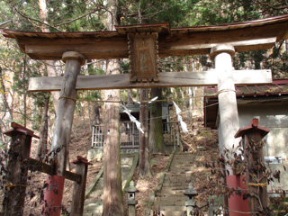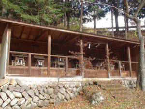 この本殿は諏訪の宮大工、三代立川和四郎富重の建築で、万延元年(1860)に再再建したもので総欅で三社の高何処造りである。