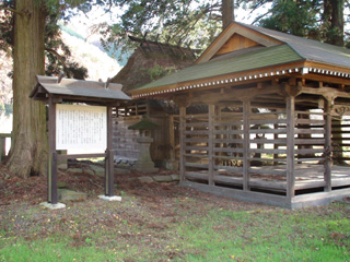 以前は長久保の町裏地籍にあり、その当時は大欅の森があったが小学校校庭拡張のため昭和33年5月現在地に移転した。その際略式の四神の祭祀のあることが発見された。