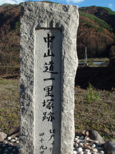 藩領の西端、中山道笠取峠(ここより西1・7キロメートル)にあったものの復刻である。これを境に西は幕府領である。