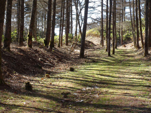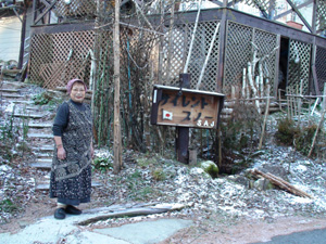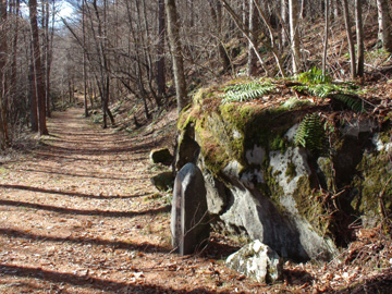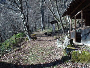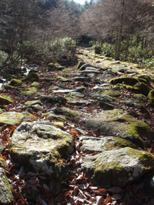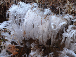 | 09:55 | 広河原一里塚 もうすぐ峠だ。霜柱が10センチ程に発達している。 寒いょー、助けてぇー。 |
