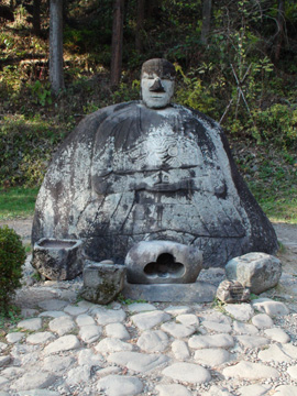 | 14:48 | 万治の石仏 説明によると、春宮の近く、田んぼの中に鎮座する阿弥陀如来の石仏、高さ2m余の自然石にちょこんと頭を乗せた姿が興味深く、各界著名人が絶賛したころから広く知られるようになった。 |