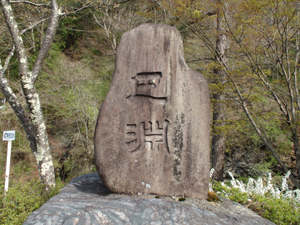 岩をかみ蒼くうずまく巴が渕、四季の風情が魅する巴が渕。木曽川の悠久の流れと共に、この巴が渕の余情はみつみつとして、今も世の人の胸にひびき伝わる。
