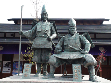昭和50年笹村草家人先生の絶作となる義仲像(木曽檜寄木造り等身大)が奉納された。旗挙げの雄姿が目に浮かぶ力作である。