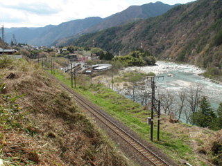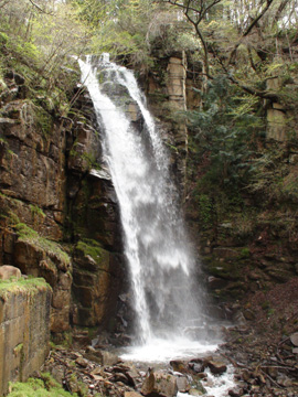 落差20m程の立派な滝だが、JRの線路直ぐ脇にあるために邪魔者扱いにされ、何だか卑屈になっている。
