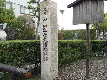 鵜沼宿から加納宿までは約16.8キロ。天保14年の人口は2728人、総戸数805軒、本陣1軒、脇本陣1軒、旅籠35軒であった。この宿場は名古屋方面に向かう中継地として栄えた宿場で、城下町でもあった。慶長6(1601)年、徳川家康により岐阜城が廃城され、代わりに築城されたのが加納城(永井肥前守3万2千石)である。享保13(1727)年落雷で焼失している。 |