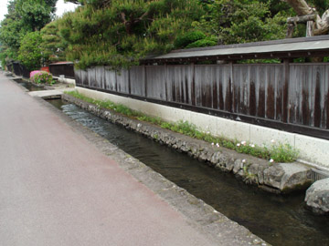 4−50cmもある大きな鯉が泳いでいる。ウマソーだ!この付近、昔の武家屋敷の面影を残すとても良い風景だ。