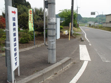 「旧奥州街道は右折です」の大きな看板(下の写真)