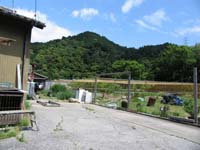 近くに小川が流れる。なんの変わりも無い草原、ぼつぼつ亀山が終わる。