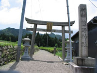 鳥居から本殿まで何十基もの燈明が並んでいる。 |