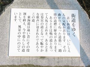 古い街道には、いにしえ人の気配があります。その曲がりくねった道筋に、路傍の道標に歴史があります。あるときは戦の道となって人馬どよめき、あるときは参宮の道となって賑やかな歌声に包まれたであろうこの道。