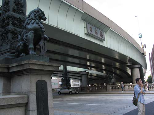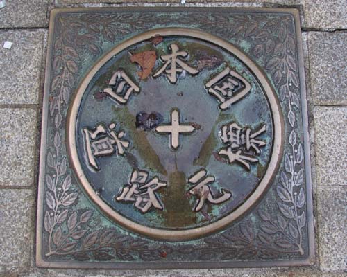 東京都中央区日本橋1丁目、「日本国道路元標」は佐藤栄作氏(元総理大臣)の筆による。 江戸時代の旅人は「七つ立ち」、現代時間の午前4時頃に日本橋を出発したらしいが家庭の事情や電車の都合で平成の旅人・東海道ウォーカーはこの時間に日本橋を発つことになる。 サラリーマンを辞め時間が出来たら、いつか東海道を歩いてみたいと考えていた。 街道歩きには体力、気力それに資力も必要ついでに家族の理解・・・・あれやこれやと思案していると実行に移す決断が数年も要することになる。 2008年5月、60歳代中半にもなって、ようやく決意が付いた。「まだ、やれる!」自分への挑戦である。 夢の実現第1日である。今がその時、これから京都三条大橋まで492kmを歩くと思うと不安と期待が交錯する。 が、誰も注目してくれない。出来れば「東海道一人旅中」の幟でも立てて歩けば、行き交う人が少しは注目したり激励してくれるかもしれない。 友人、知人に「東海道歩きの計画」を吹聴する自信はまだない。きっと箱根を越えた辺りで身近な友人だけには話せる、かな。
