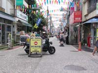 | 11:30 | 洲崎大神(宮前)。この付近には高架道路が交差して「旧東海道」の指導標が全く見あたらない。迷う。 一見古いお寺に入り、「旧東海道」の道を聞くと詳しく教えてくれた。 |