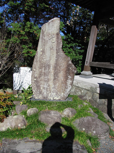 の句と「六々庵巴静寛保甲子4年(1744)2月19日没」と刻んだ自然石の碑である。