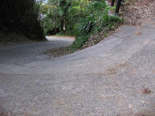 「沓掛」の地名は峠の急な坂道にさしかかった所で草履や馬の沓を山の神などに手向け、旅の安全を祈願するという古い慣習に因るといわれる。現代に残る生活道路の東海道でこんな急な坂道(一般道)を見たことがない。急坂を軽自動車が勢い付けて登ってくる。