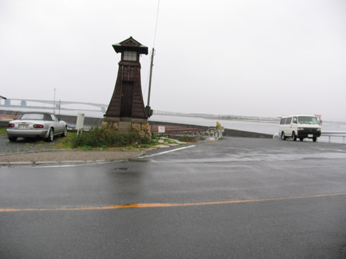 常夜燈・後ろは浜名湖 |