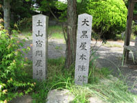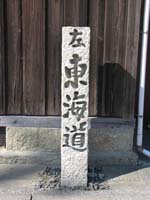 ここ東の追分は伊勢別街道の分岐点で、鳥居は伊勢神宮の式年遷宮の際、古い鳥居を移築するのがならわしになっている。江戸方への次の宿は、亀山宿である。道標には外宮(伊勢神宮)まで15里(60キロメートル)と刻まれている。 |