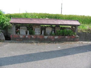 舞込橋から100m程の距離。土葬されたらしい墓が何基もある。
