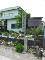 家の玄関前に大きな「明治天皇聖跡」の脊柱が立っている。