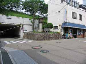 東海道に面した小坂町の曲がり角に伝えられる大石。「力石」とも呼ばれる。江戸時代から知られた大石と見えて、浮世絵師国芳が錦絵の題に採っている。